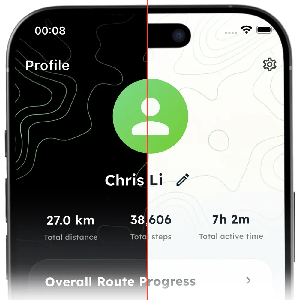 Walk or run your way forward. GoAtlas syncs with Apple Health and Google Health. Every step updates your position on the map in real time, placing you deeper into your chosen route.